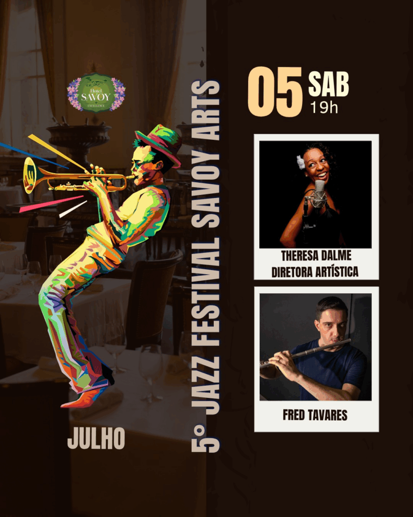O “5° Jazz Festival Savoy Arts”, promovido pelo Hotel Savoy Excellence Campos do Jordão, abre o mês de julho, neste sábado (5), com uma apresentação especial: o Mineirin Jazz, sob o embalo musical do flautista e saxofonista Fred Tavares. O evento, que acontece das 19h às 22h, tem entrada gratuita e não é necessário estar hospedado para participar.