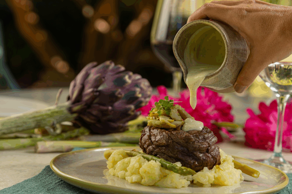 SABORES DA PRIMAVERA – O frescor da Primavera está presente em todo o cardápio, desde às entradas– como a Salada Primavera, que reúne alcachofra, flores do jardim e brotos– à carta de bebidas, com drinks autorais, cervejas, vinhos e espumantes.