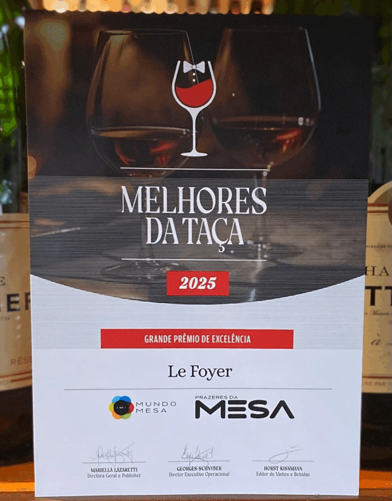 honra imensa, pois reafirma o compromisso do Le Foyer em tratar o vinho não