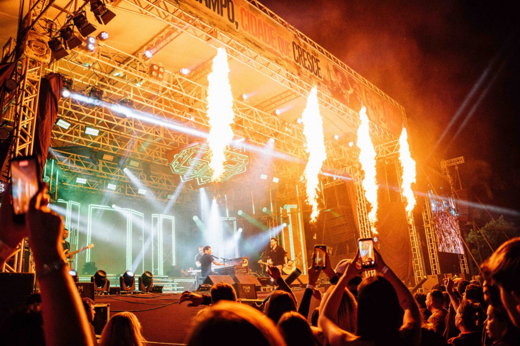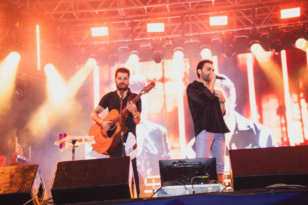 Do início ao fim, o público cantou junto grandes sucessos da dupla, como “Pulei na Piscina”, “Sigilo” e “Haja Colírio”, transformando a noite em um verdadeiro espetáculo de interação e alegria.